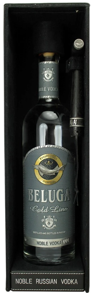 Abgefüllt wird der Beluga Vodka mit einem Alkoholgehalt von 40% in hohe, glasklare Flaschen mit einem massiven Metall-Etikett, das den Namensgeber dieses Vodkas, den russischen Stör, zeigt. Diese Flasche ist mit einer echten Wachsversiegelung verschlossen, weshalb im Lieferumfang eine kleine Bürste enthalten ist, damit der Flaschenhals von Wachsresten gesäubert werden kann. Verpackt in eine aufwendig gestaltete Geschenkbox, ist der Beluga Gold Vodka der absolute Höhepunkt jeder Vodka-Bar und eignet sich hervorragend als luxuriöses Geschenk für Kenner und Geniesser!