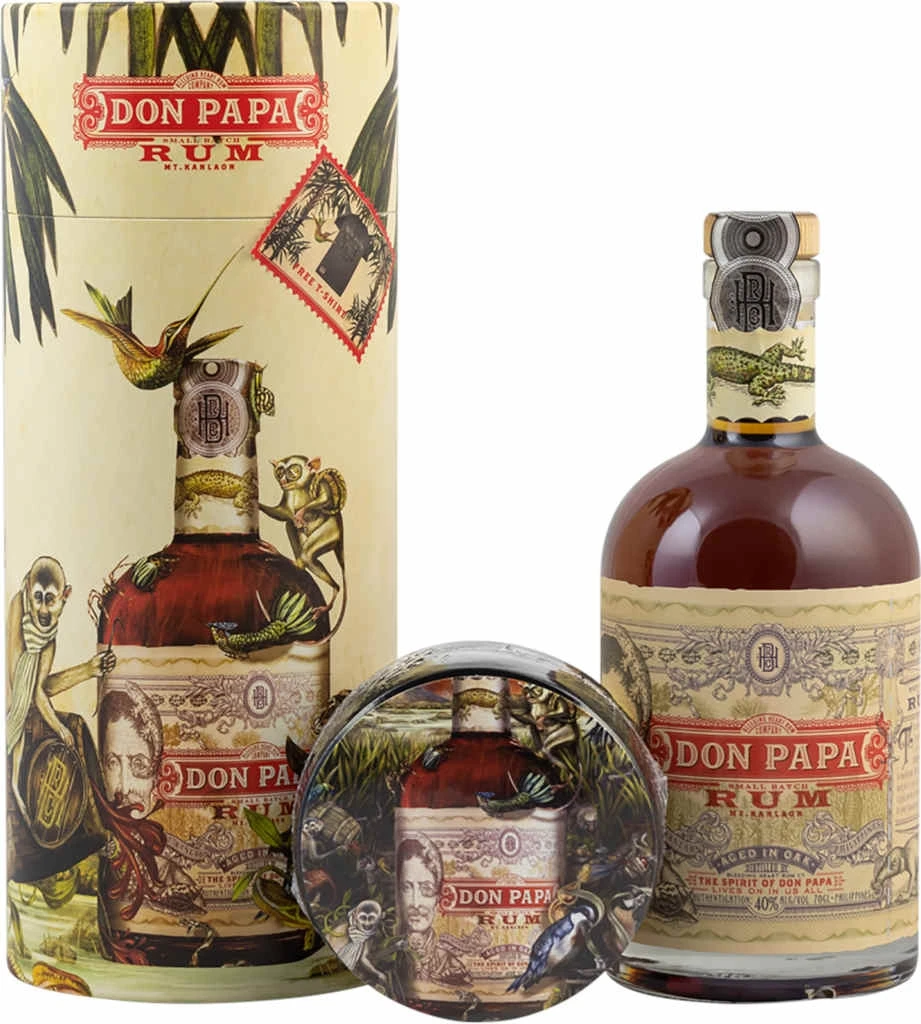 Don Papa Rum in der 0,7l Flasche im Geschenkset mit 40% Vol.Alc. mit Farbstoff