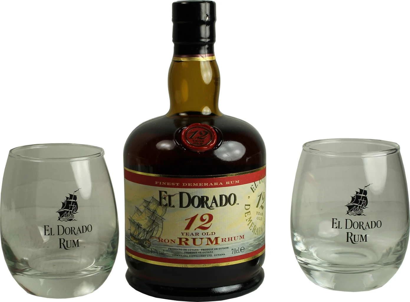 Rum von El Dorado in einer 0,7 l Flasche mit 40% Vol. Alc. mit Farbstoff