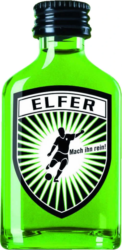 Der Elferwaldmeister ist der perfekte Feiershot, egal ob für Fußballfans oder nicht. Er besitzt eine grüne Farbe, was auf alle Fälle an einen Fußballrasen erinnert. Er schmeckt nach Waldmeister und ist als Likör mit 15% Vol. Alc. auf keinen Fall zu herb. Hergestellt wird er in Deutschland von In-SPIRIT.