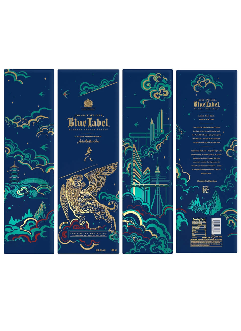 Johnnie Walker ist bekannt für seine außergewöhnlichen Abfüllungen oder Design Editionen. Mit der Chinese New Year Reihe wurde die Blue Label Serie erweitert. 2022 ist im chinesischen Kalender das Jahr des Tigers und so ist diese Edition eine Hommage daran. Der aus China stammende Künstler Shan Jiang entwarf das Design. Seine Kunst ist von den Gegensätzen seiner Heimatstadt Shanghai geprägt. Dort treffen Hochhäuser auf Bungalows, Moderne auf Tradition und kommunistische Ideologie auf blühende Subkultur. Hinzu kommen Einflüsse von Durer, Bauhaus, Manga und Anime.