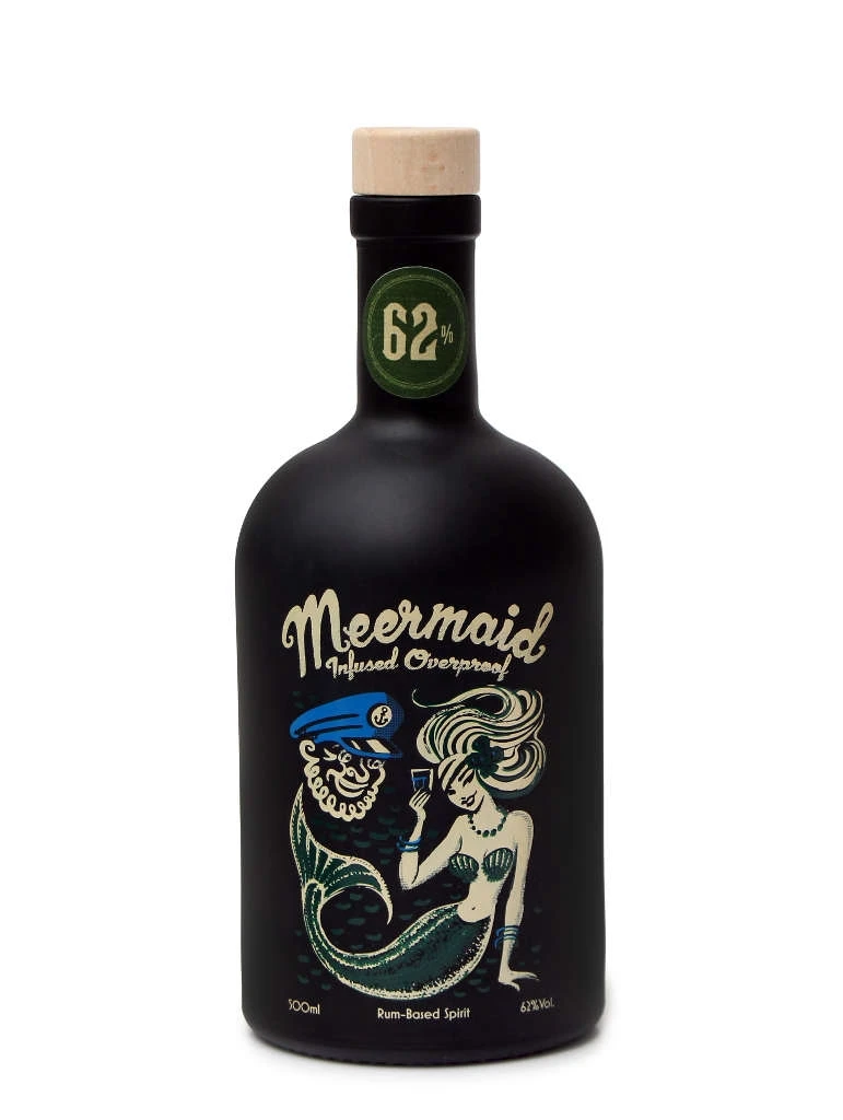 Spirituose auf Rumbasis von Meermaid in der 0,5l Flasche mit 62% Vol. Alc. und Farbstoff