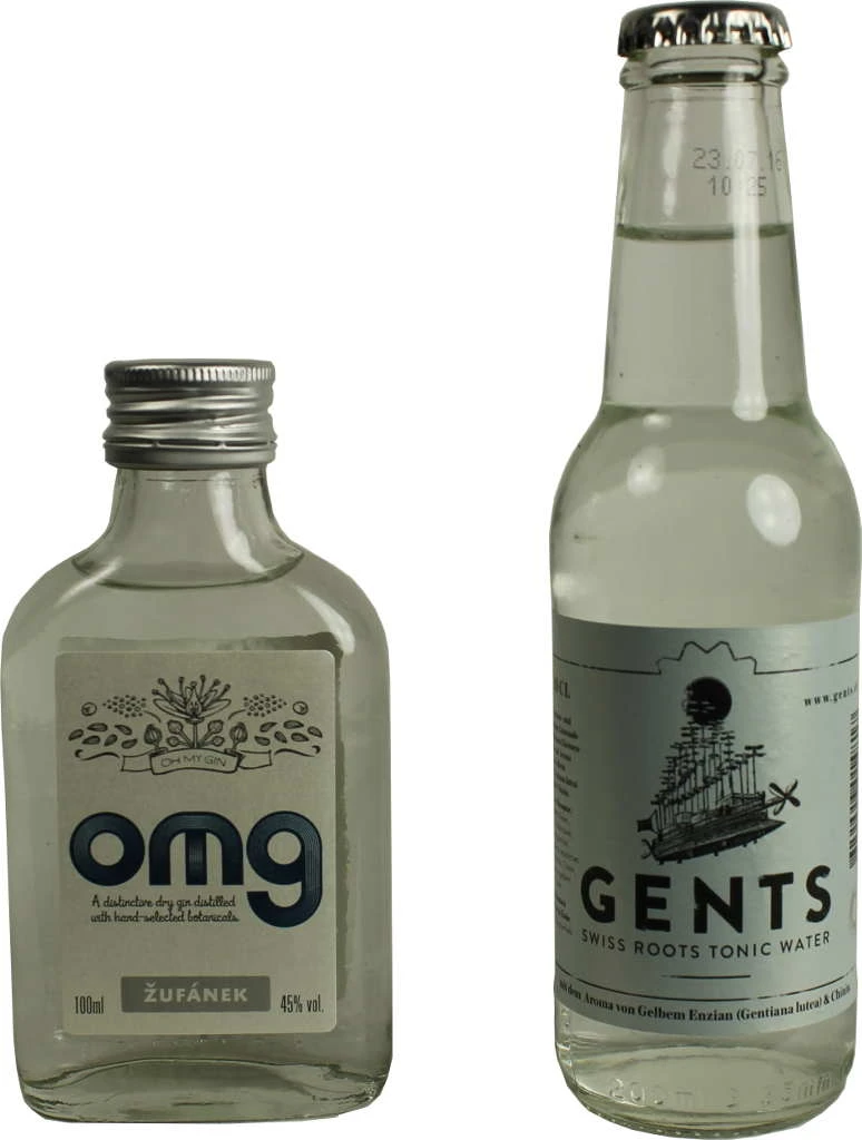 Gin Tonic set mit 0,1l Gin von Omg mit 45% Vol. Alc. und Gents tonic in der 0,2l Flasche und 0% Vol. Alc. zzgl. 0,15€ Pfand