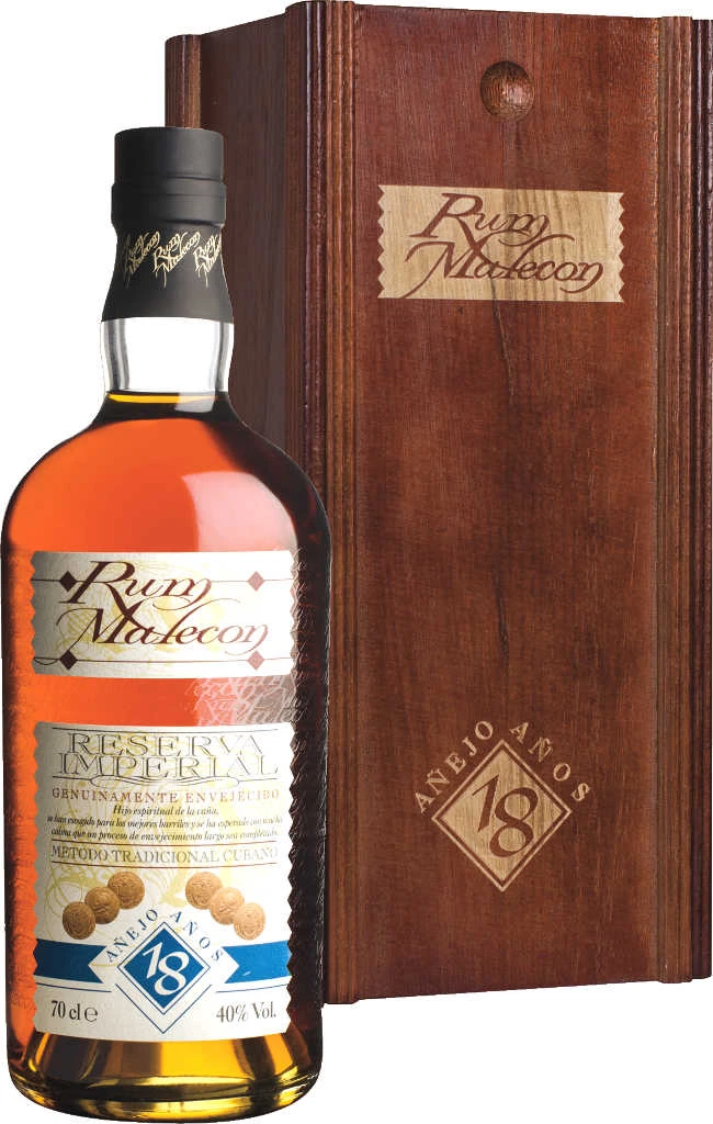 Rum von Malecon in der 0,7l Flasche in Holz-Geschenkbox mit 40% Vol. Alc. mit Farbstoff