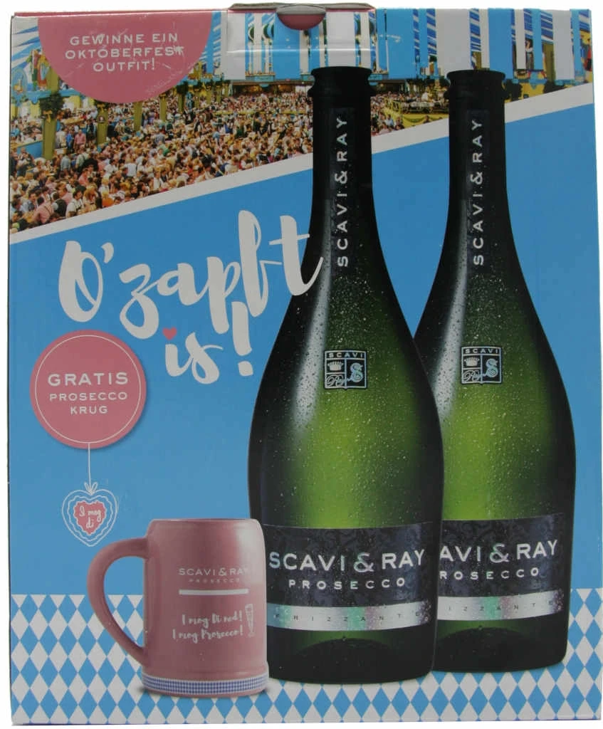 2x Prosecco von Scavi & Ray in der 0,75l Flasche mit 11% Vol. Alc. und 1 Mini Maßkrug